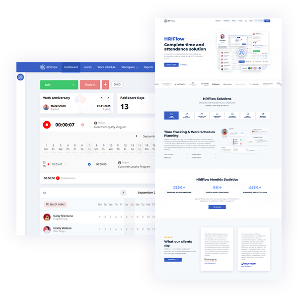 tagDiv created a software that functions as an online time-tracking app suitable for companies from various industries. The data is housed in web application where employees can check in & out from any device and business owners track activity and generate attendance reports.